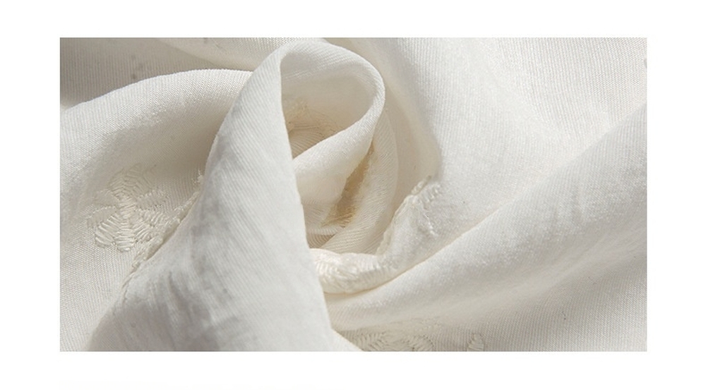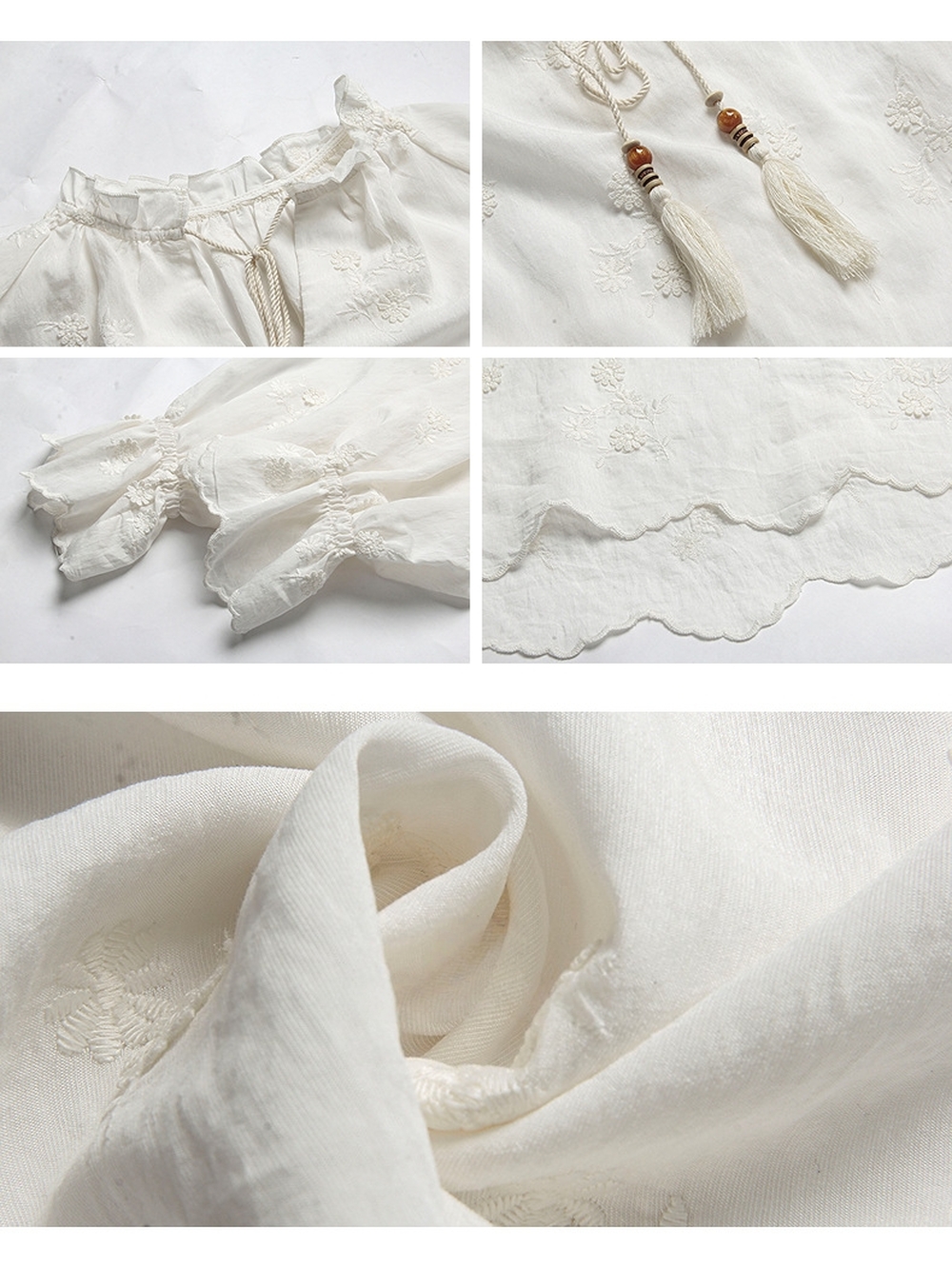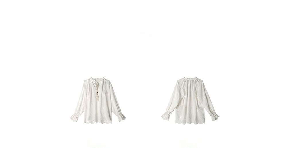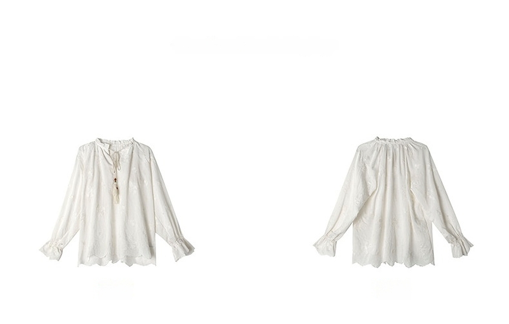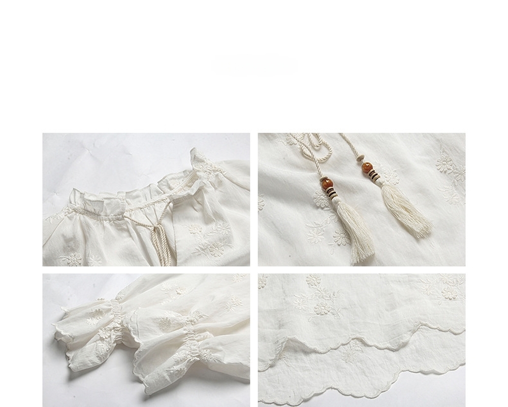 Flower embroidered ribbon point blouse