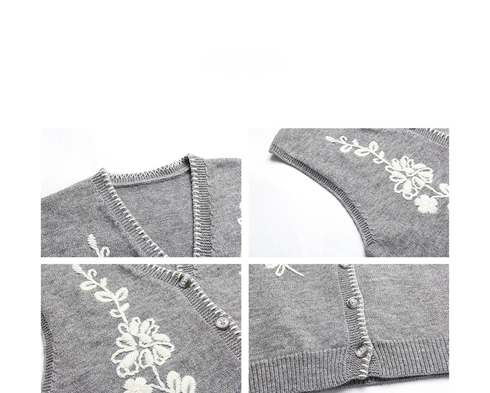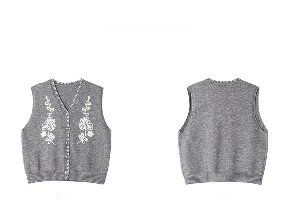 Flower embroidered V-neck knit vest