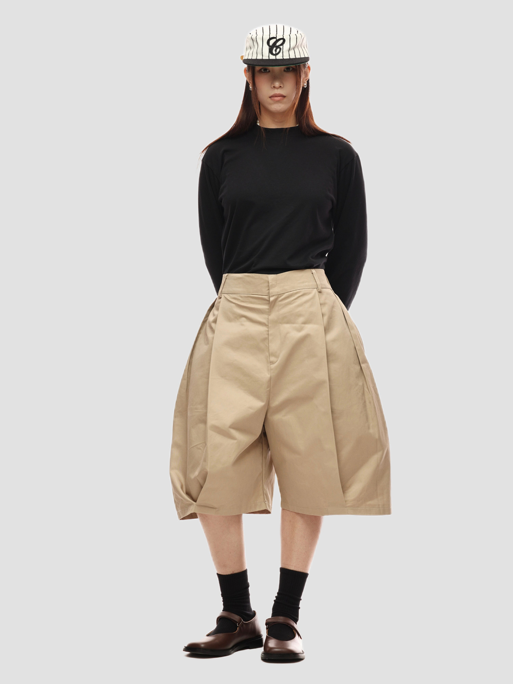 6CRAYON Elastic Waist Wide-Leg Shorts 2.0 – Double Pleated & Loose Fit with Coating