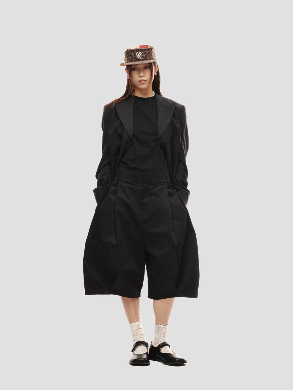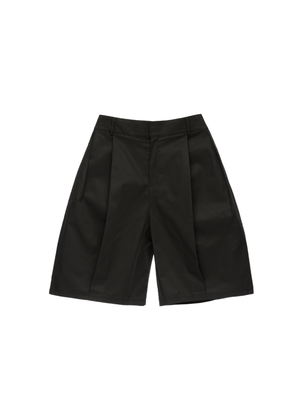 6CRAYON Elastic Waist Wide-Leg Shorts 2.0 – Double Pleated & Loose Fit with Coating