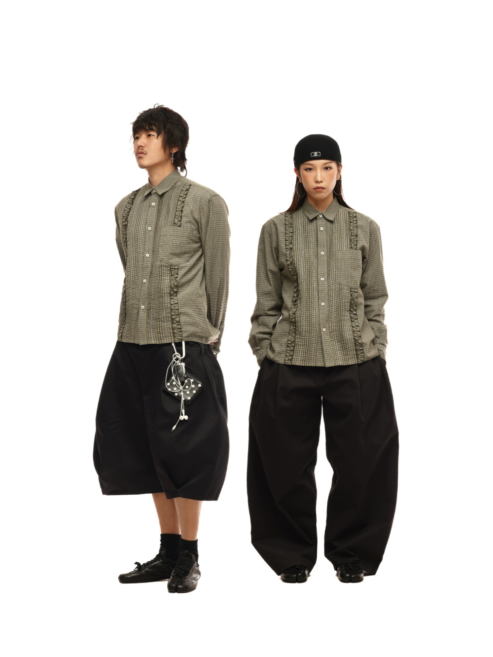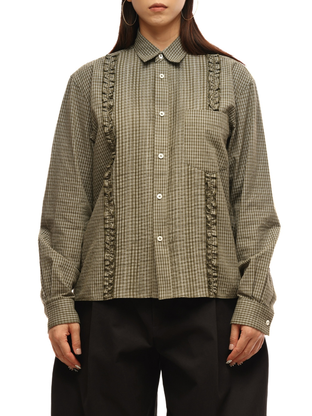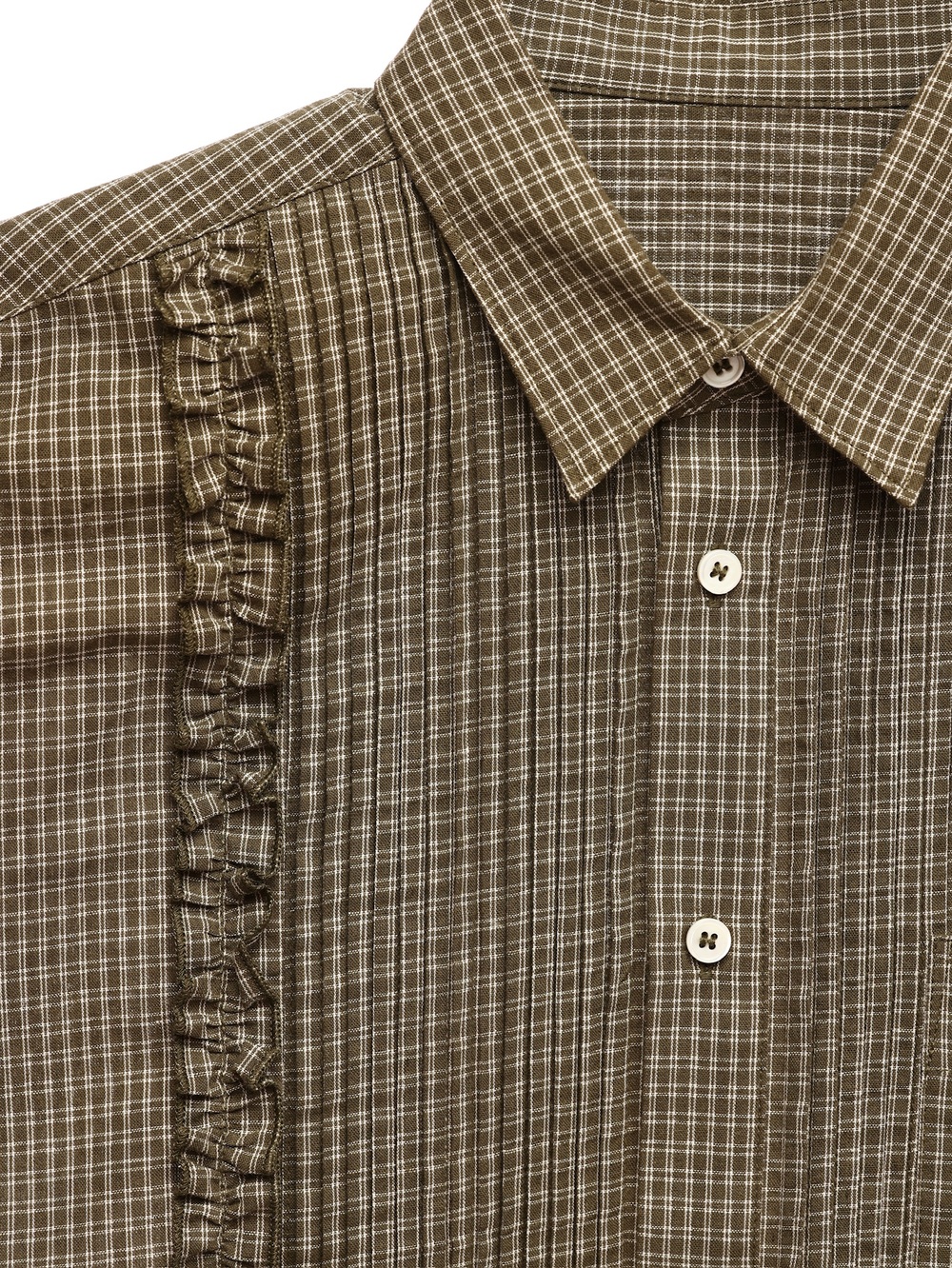 6CRAYON Retro Military Green Plaid Cotton Peplum Blouse
