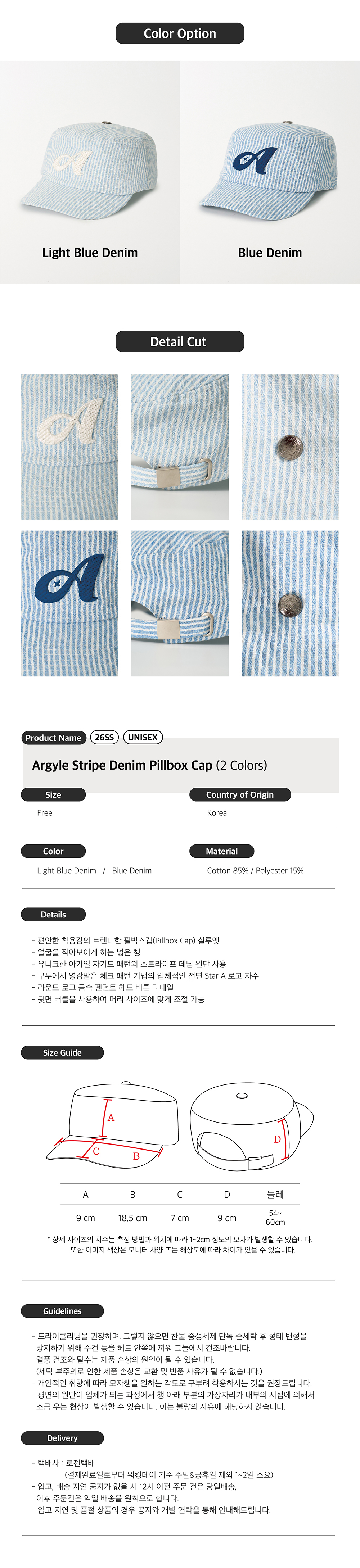 Argyle Stripe Denim Pillbox Cap (Light Blue Denim)
