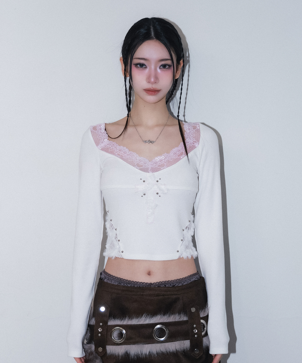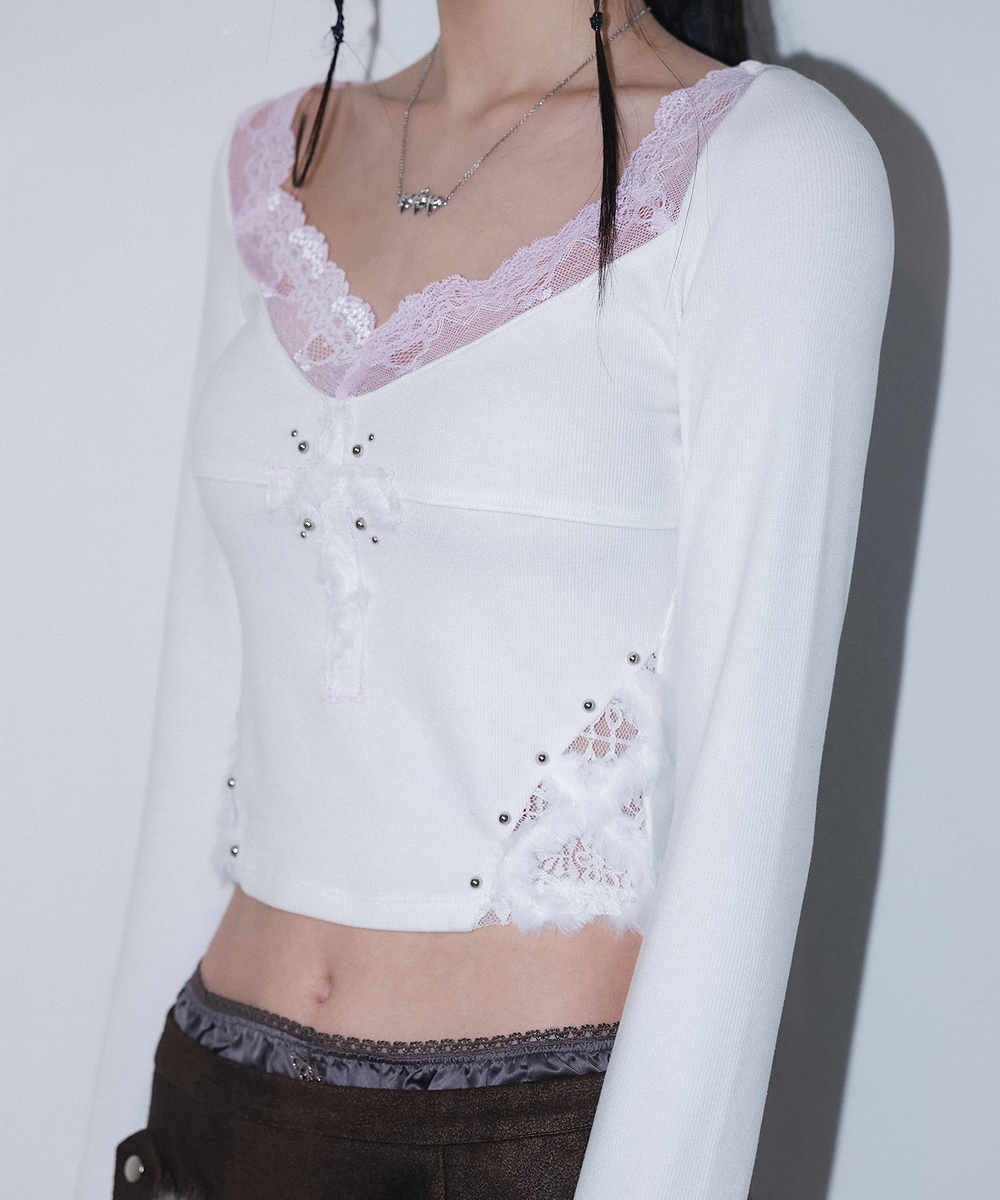 cross patch lace sleeve - ivory