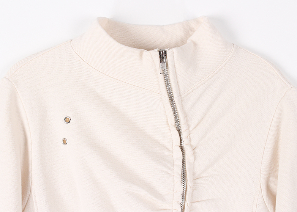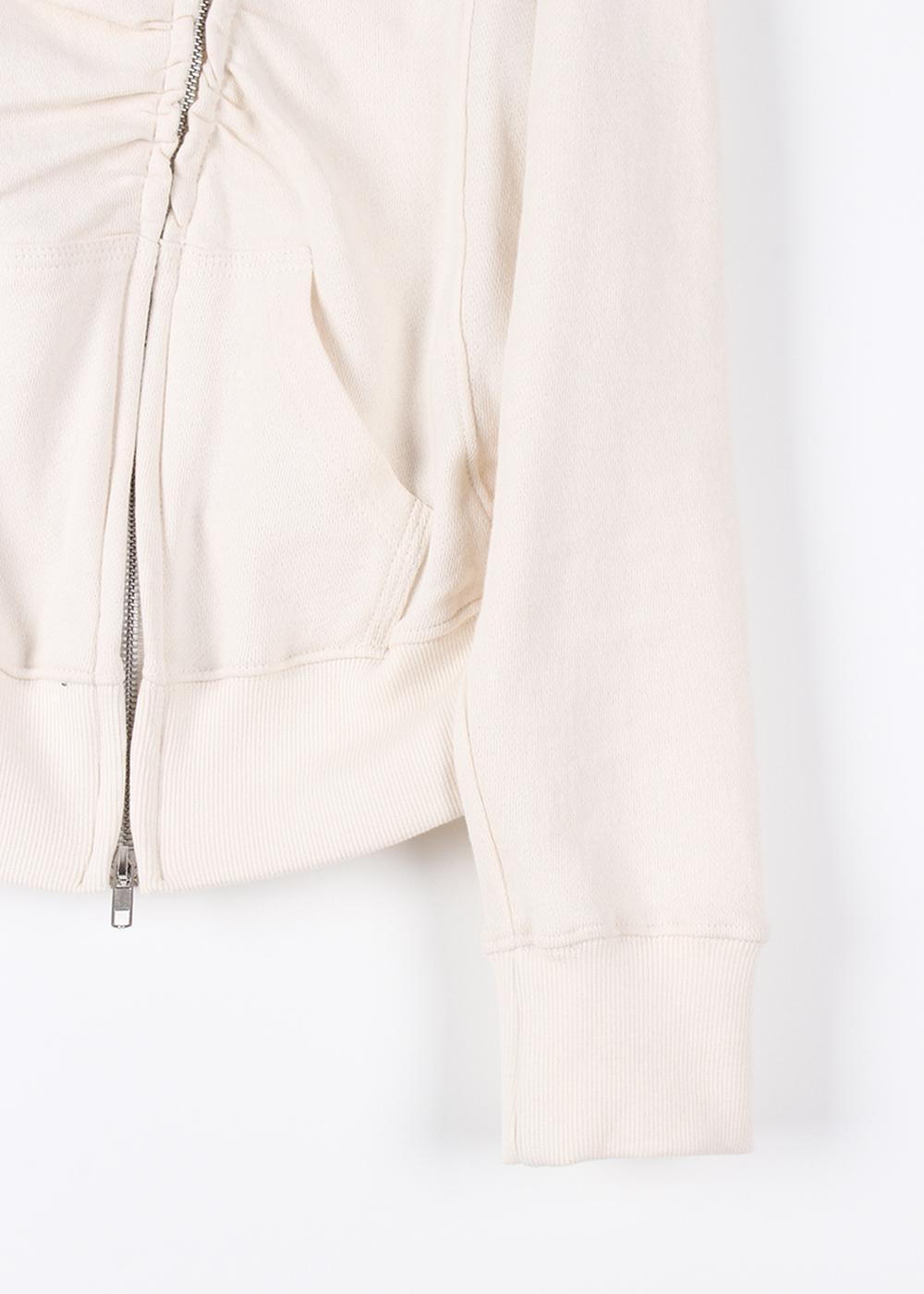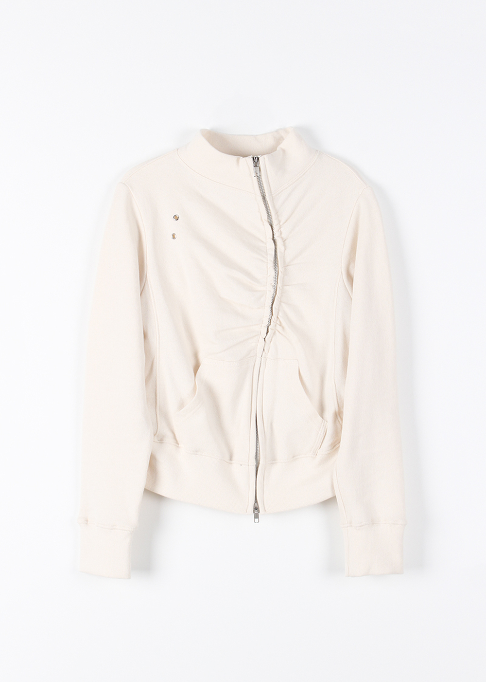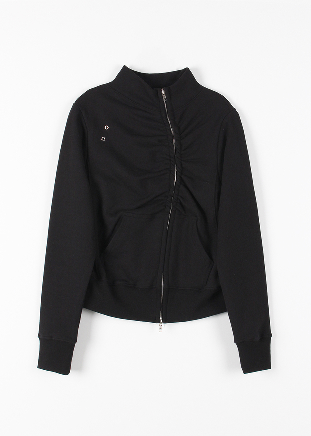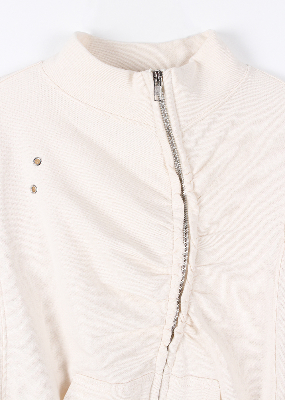 EYELET SHIRRING ZIP-UP