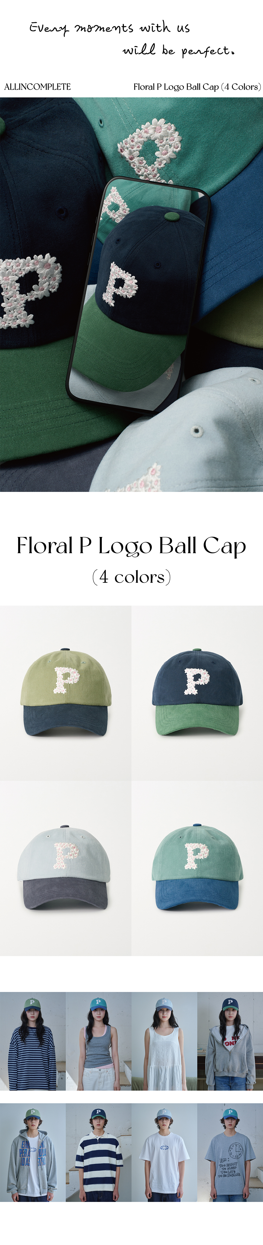 Floral P Logo Ball Cap (Soft Navy & Sky blue)