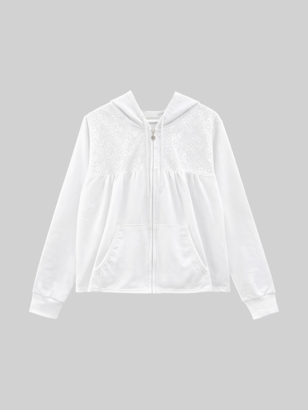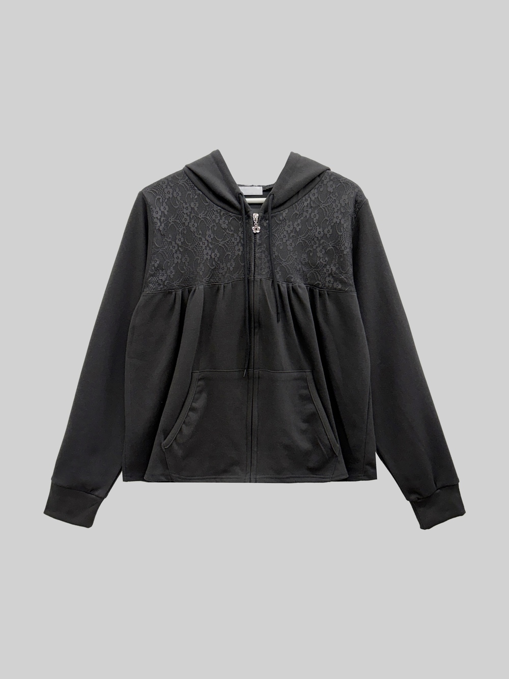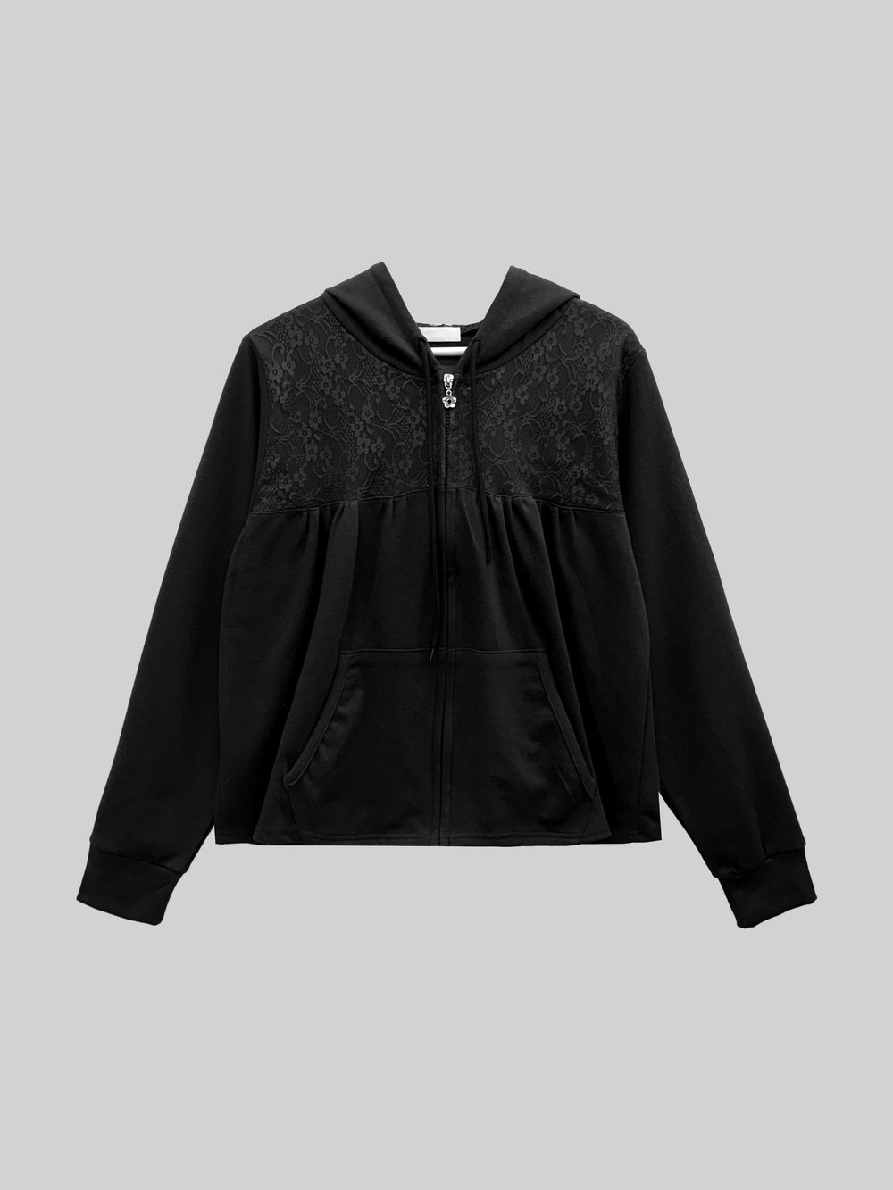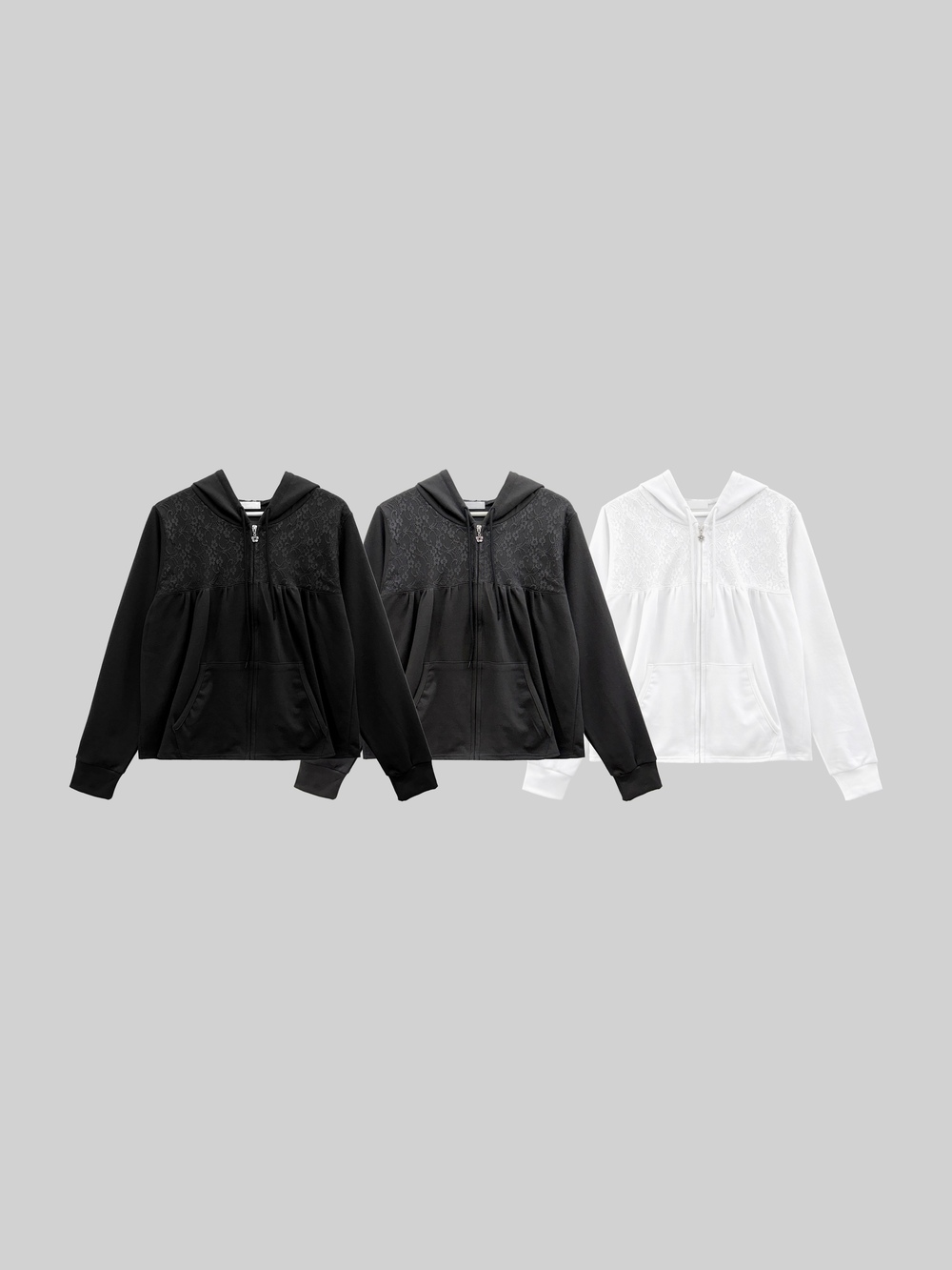 Flower Lace Two-tone Hooded Zip-up (3c)