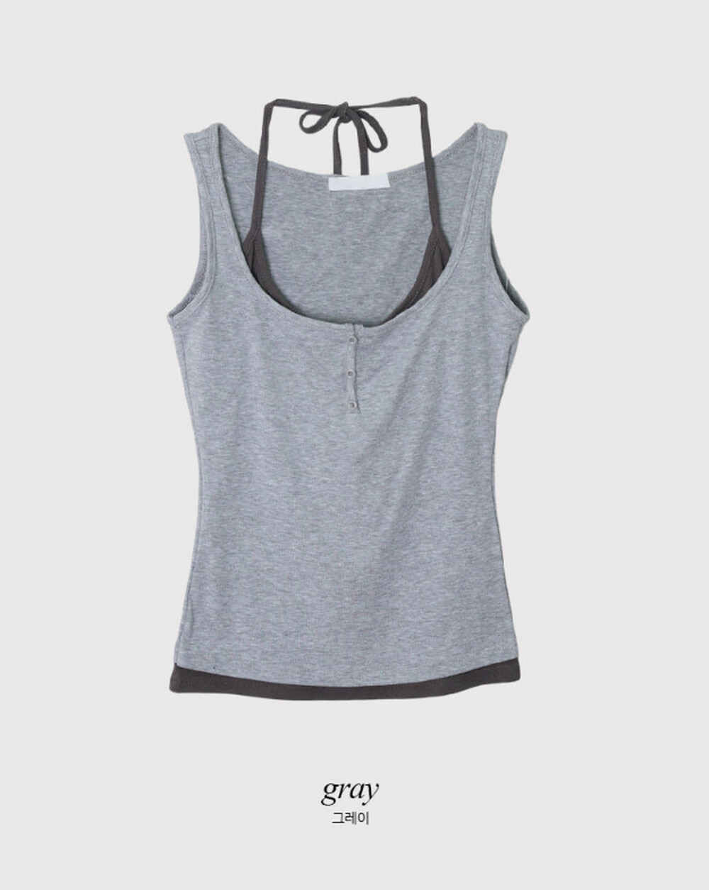 #Halter Neck Bicolor Layered Sleeveless (4color)