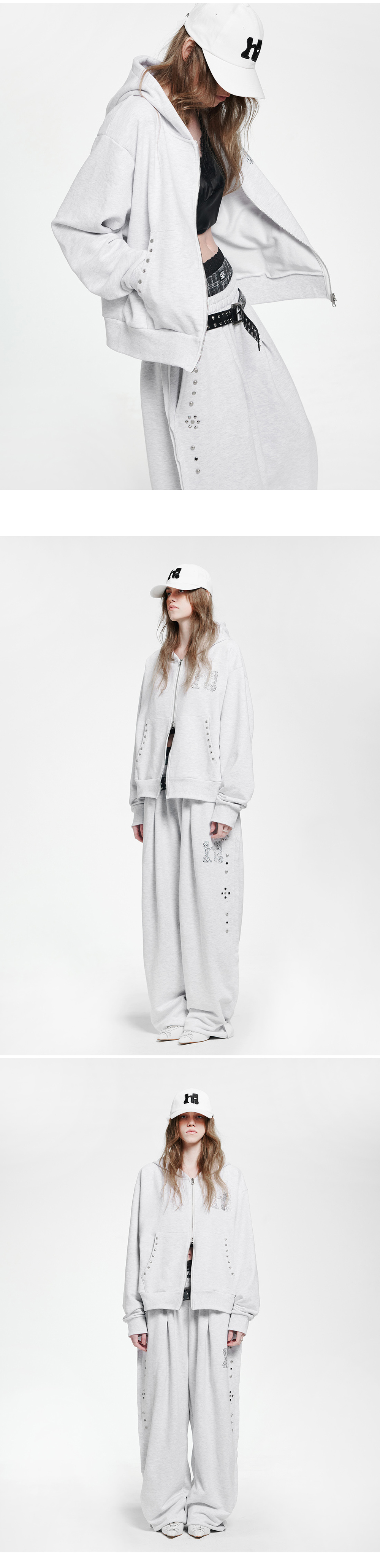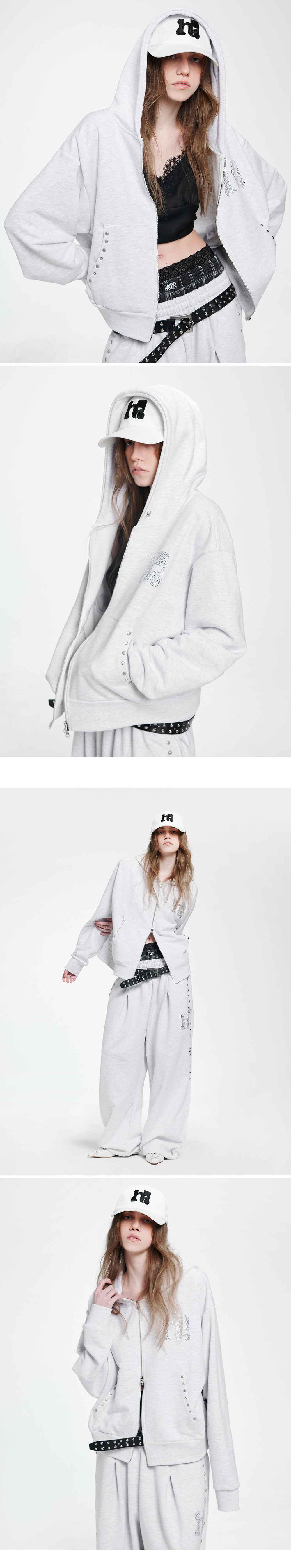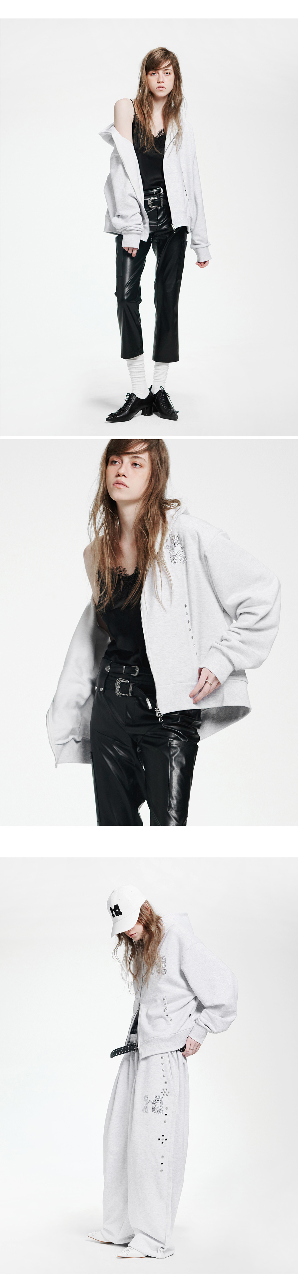 Holy Symbol Oversized hooded zip-up_WHITE MELANGE