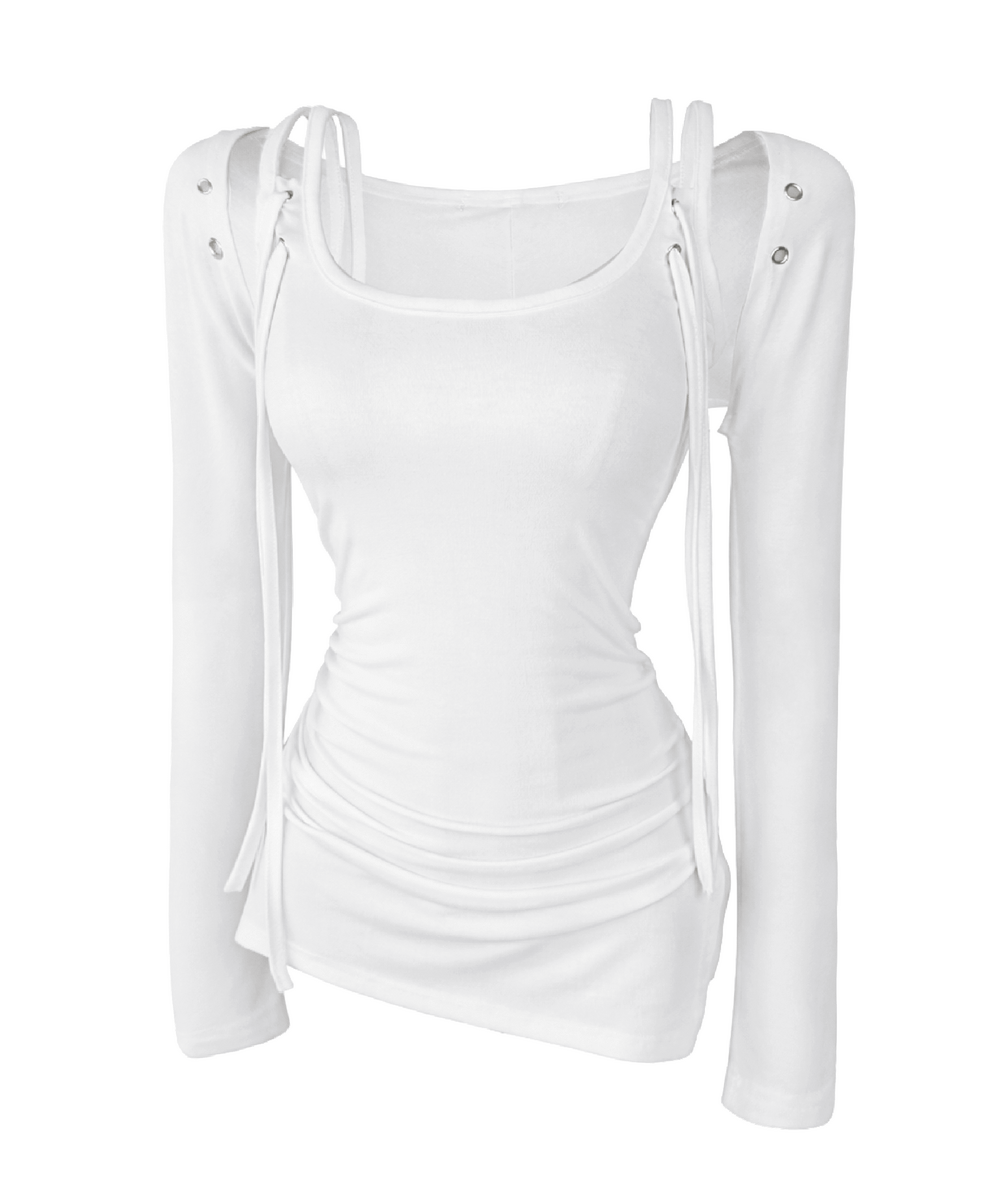 Leah Eyelet Strap Shirring Bolero Set (3color)