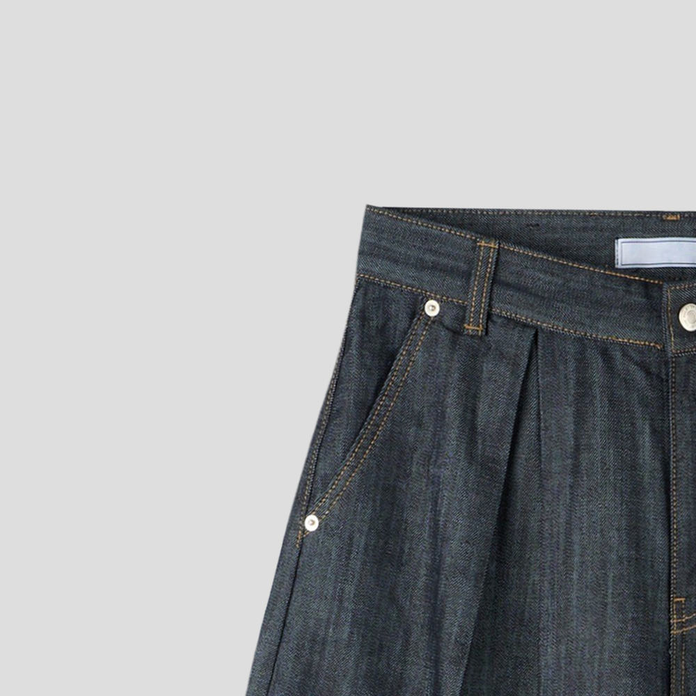 Naved Two-Tuck Raw Curved Denim Pants