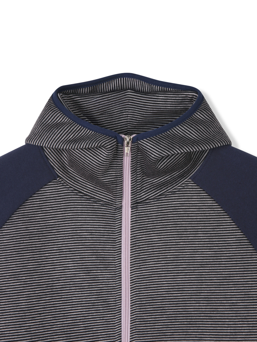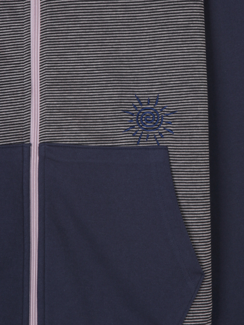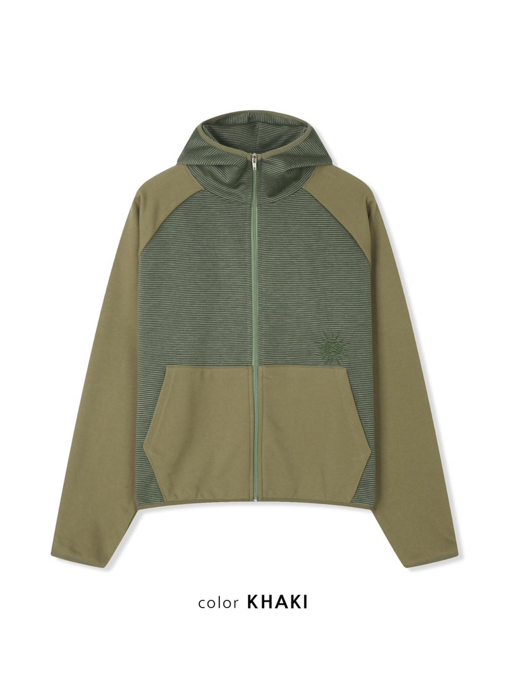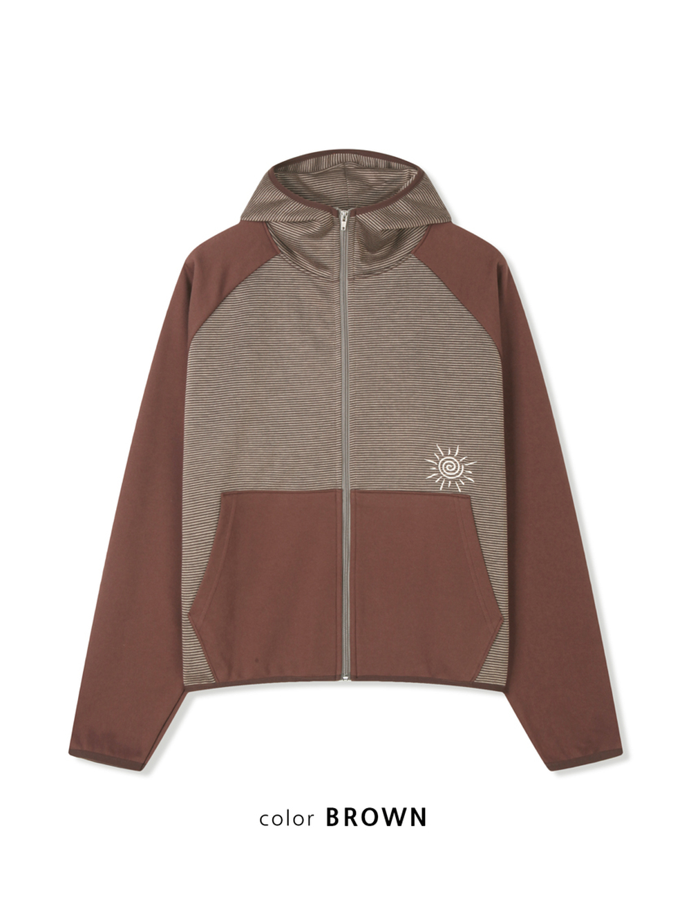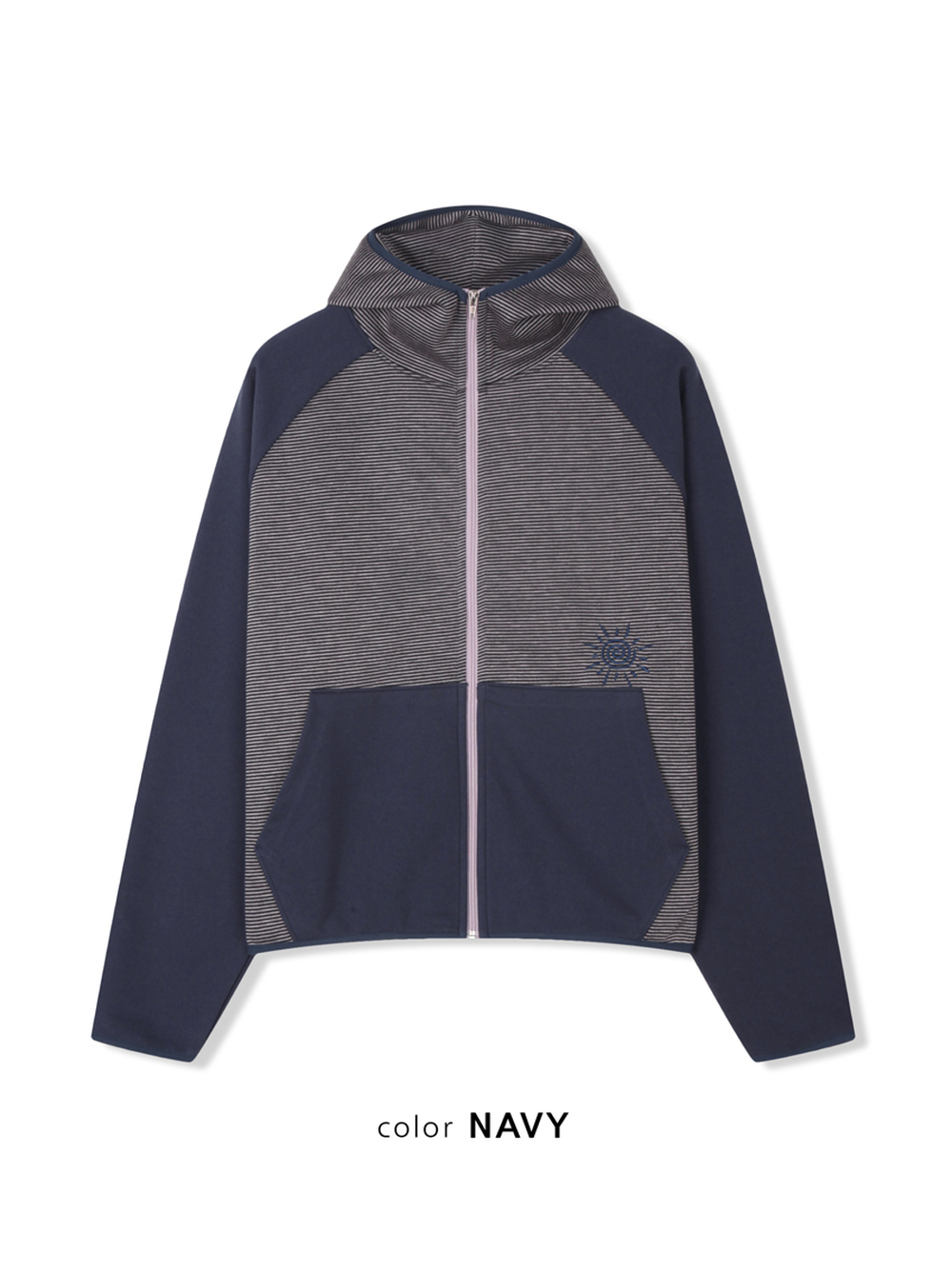 No.1587 B stripe embro hood ZIP-UP (4color)