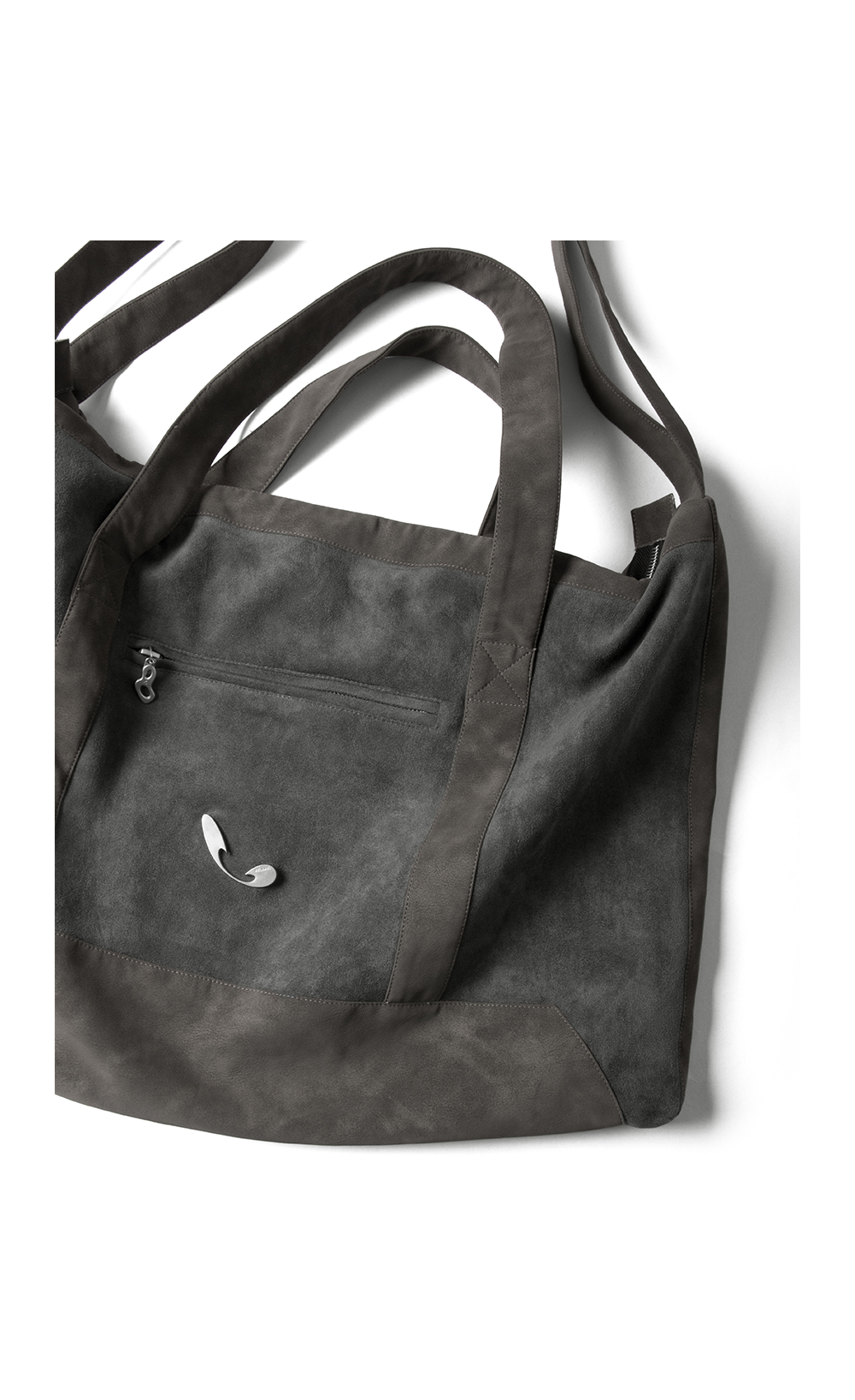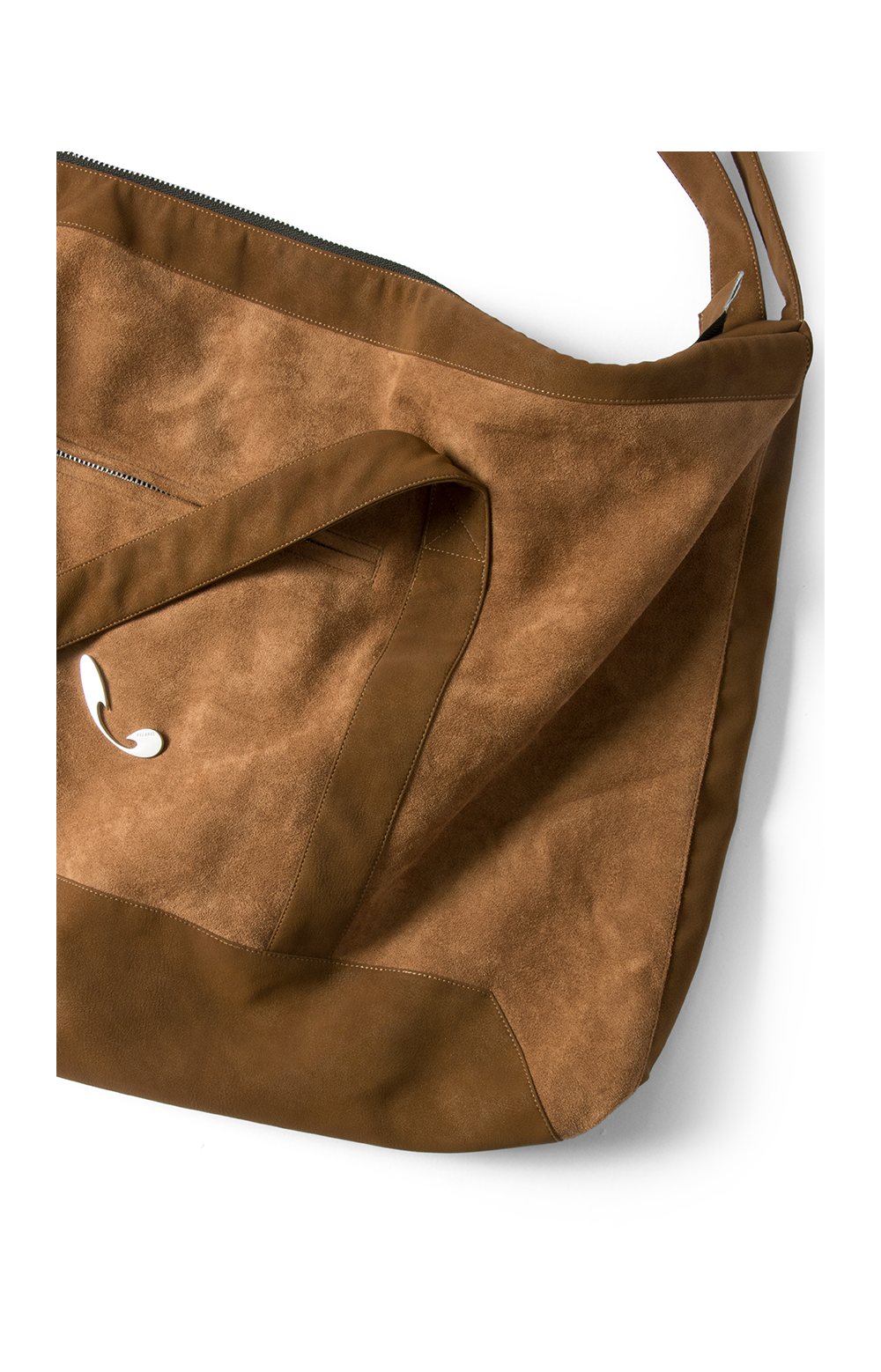 RELABEL Suede Patchwork Brand Metal Badge Multi-Functional Handheld Shoulder Crossbody Bag with Four Straps