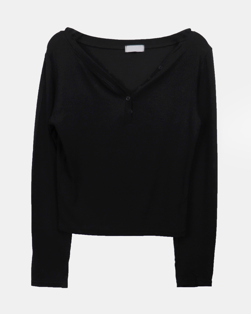 Ribe Button V-Neck Ribbed Long-Sleeve T-Shirt