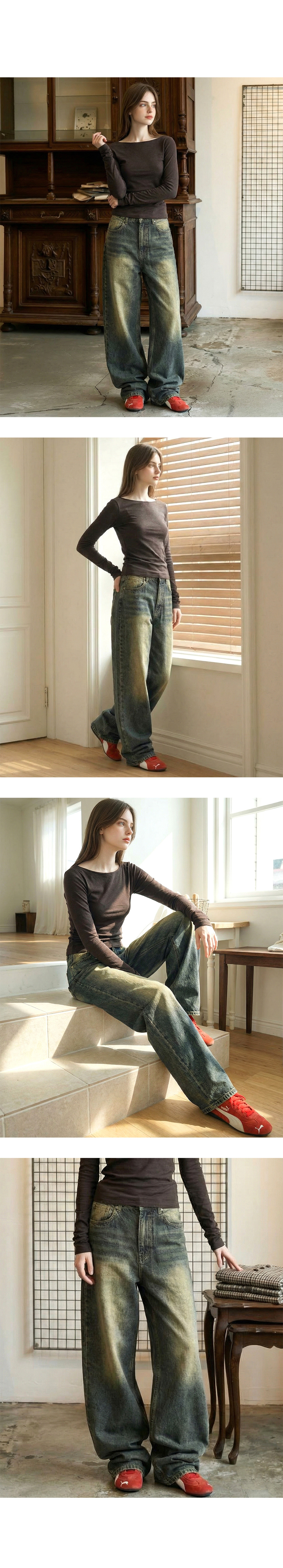 Side Pin-tuck Wide Denim Pants - 6COLOR