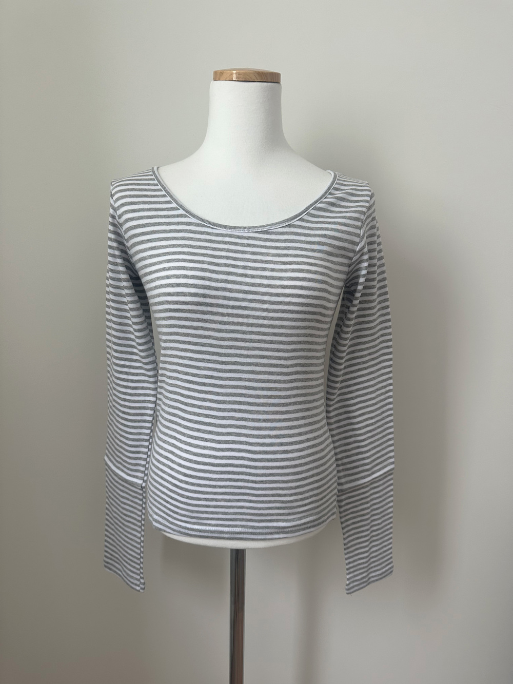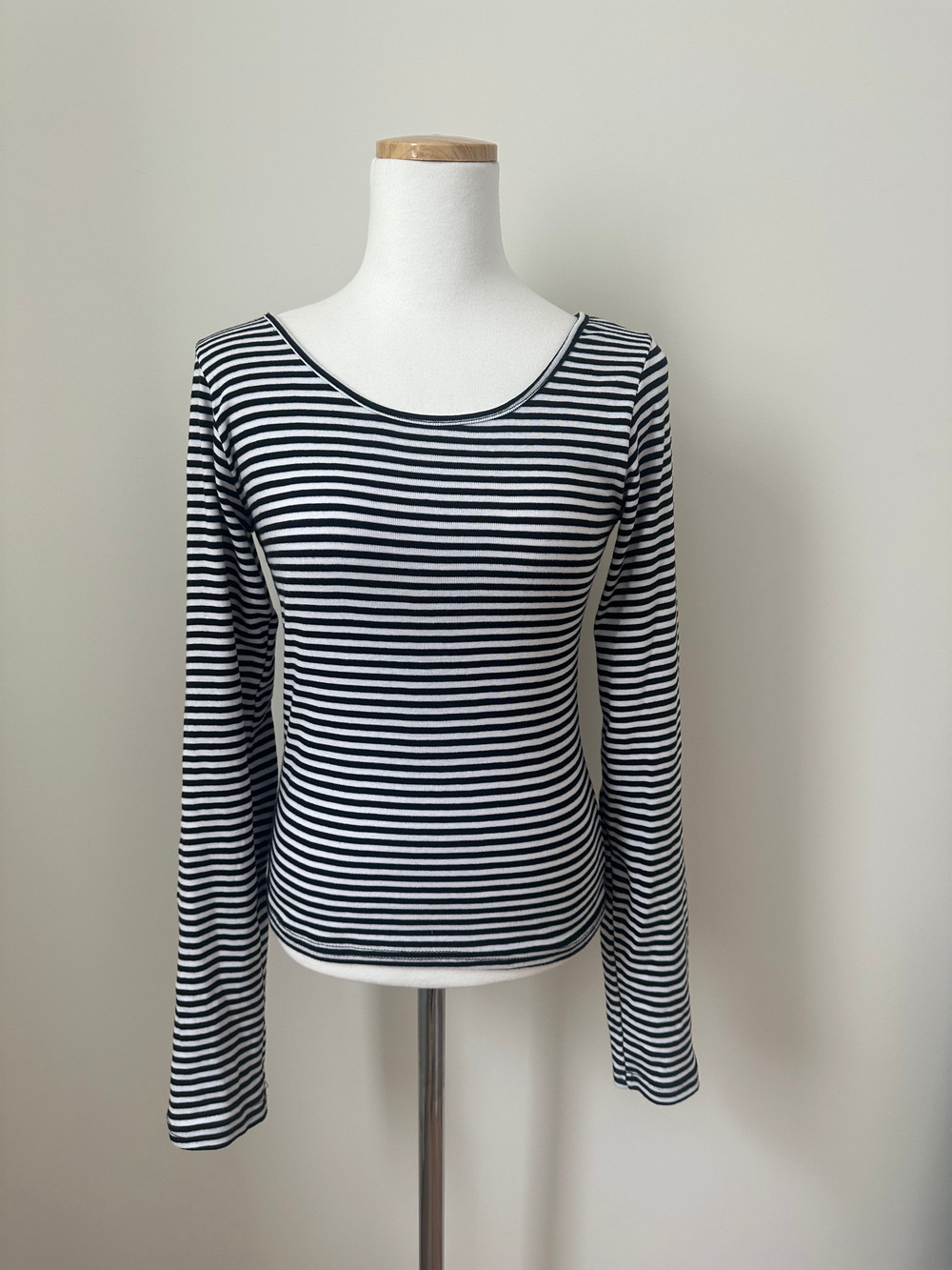 slim stripe u neck tee