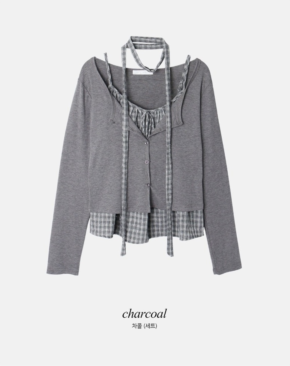 #Special Layered Bustier + Cardigan + Tie Set (2color)