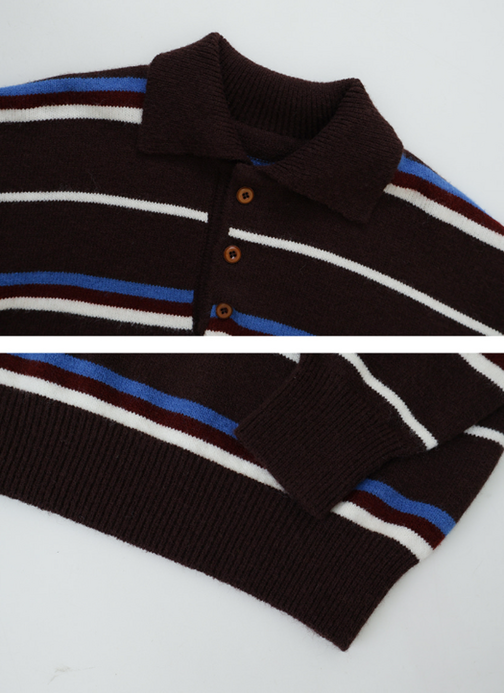 #Wood Button Border Loose Collar Knit